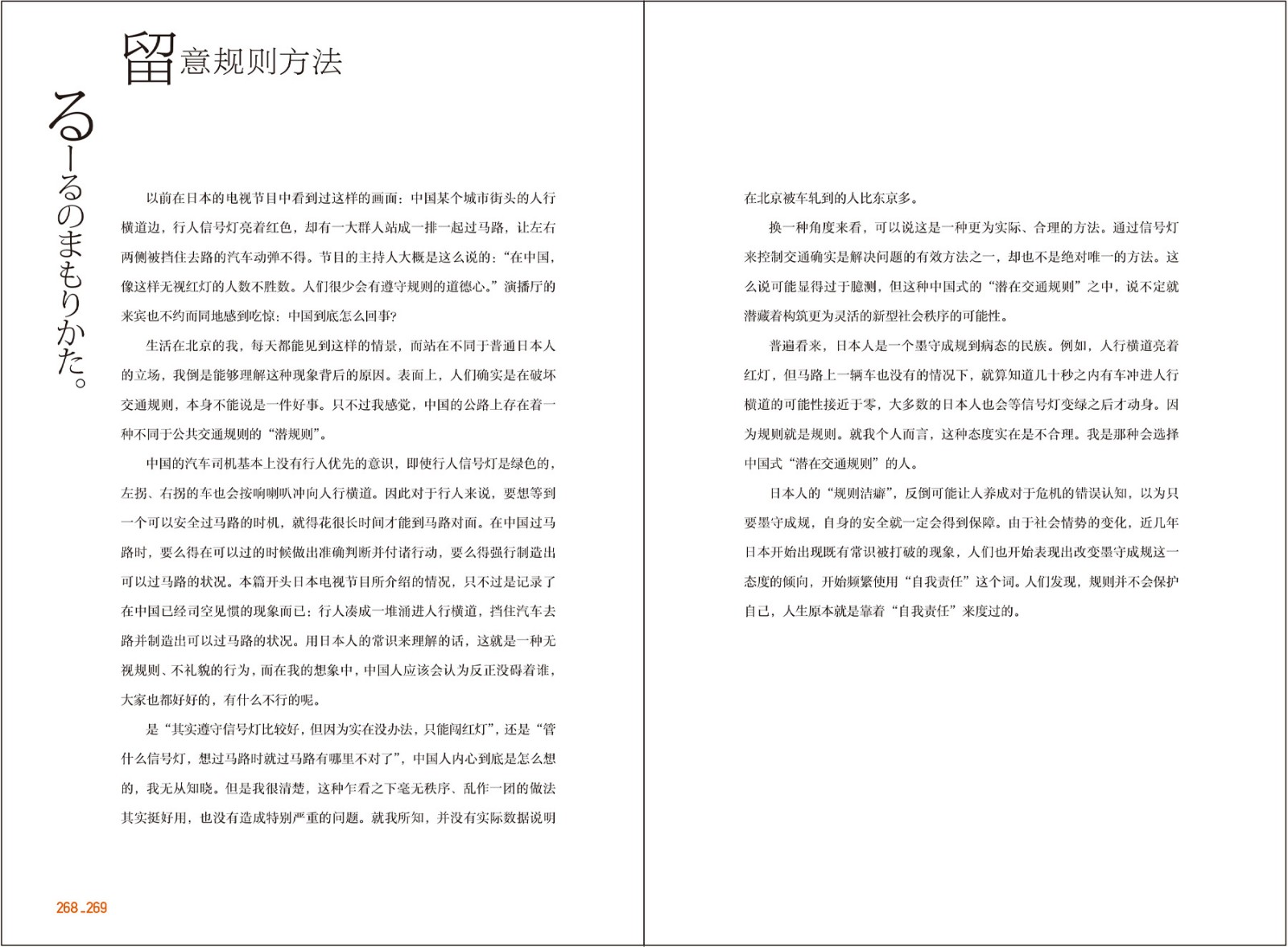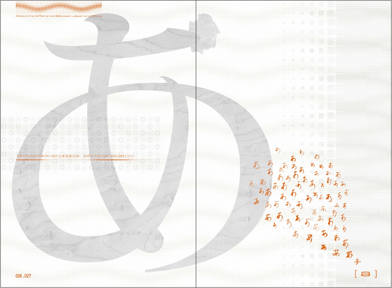 他从从一休哥在地上撰写佛经的故事,讲到日文“し”(死)字写法的演变历史;又从日本顶级偶像组合SMAP的代表曲《世界上唯一的花》的歌词,嗅出近代人过剩的自我意识。他写日本人为什么不说“设计”,也奉劝人们不要把文字叫“字体”。这本书共有四十六篇文章,对应日语的四十六个平假名。日文平假名实际上均源自于中文汉字的草书体,这成为小矶裕司写作的出发点。比如,日文的第一个假名“あ”,其来源正是草书的汉字“安”,“安心一下,人类都是一样的”一文便由“安”字的变化写起。小矶裕司认为“平假名与汉字的关系,本质上就是日中关系的隐喻”。